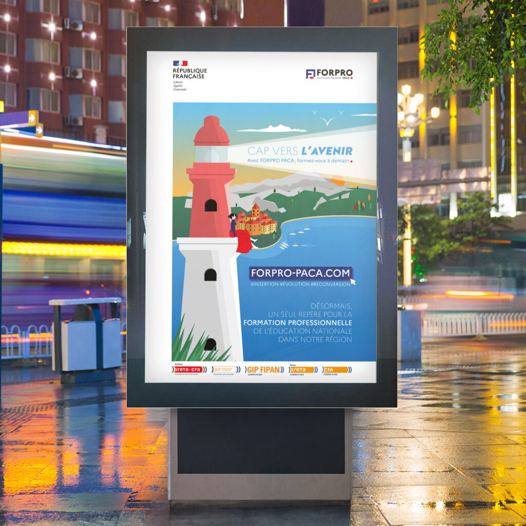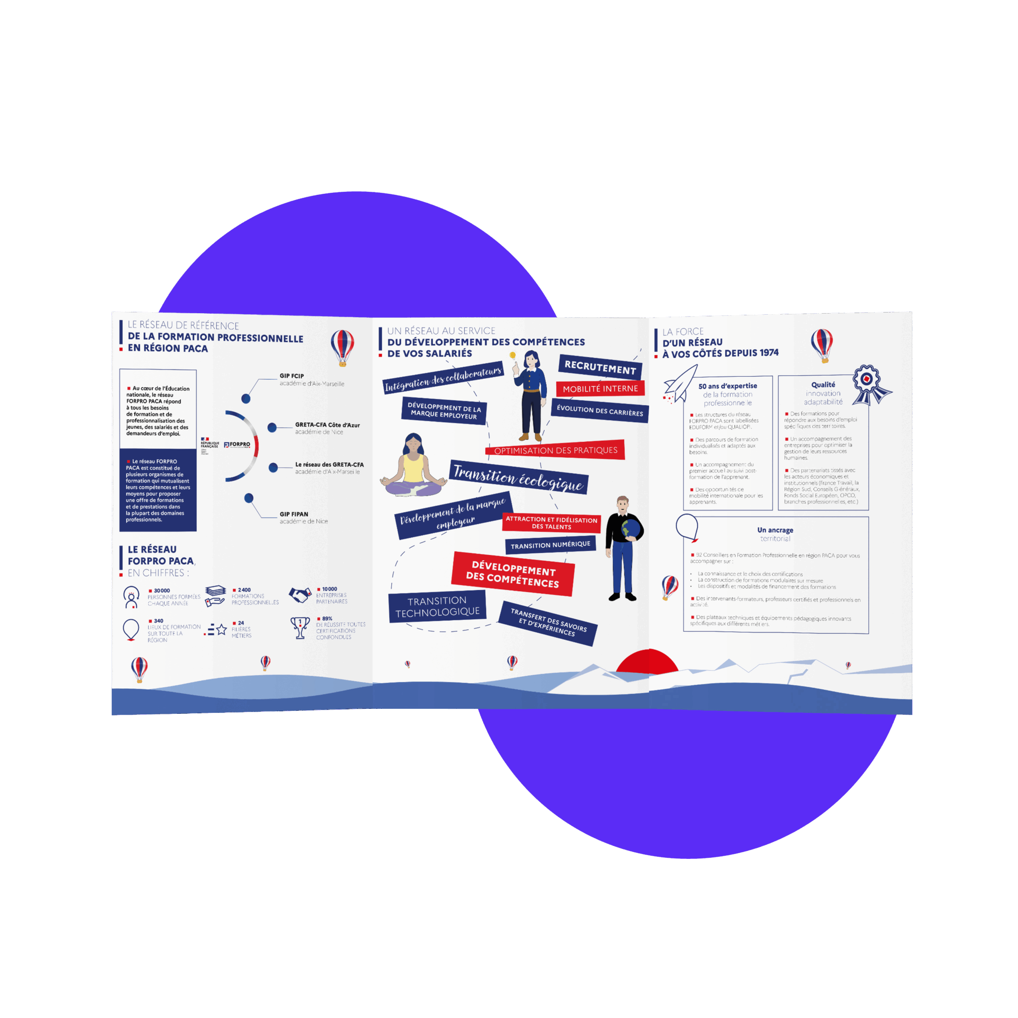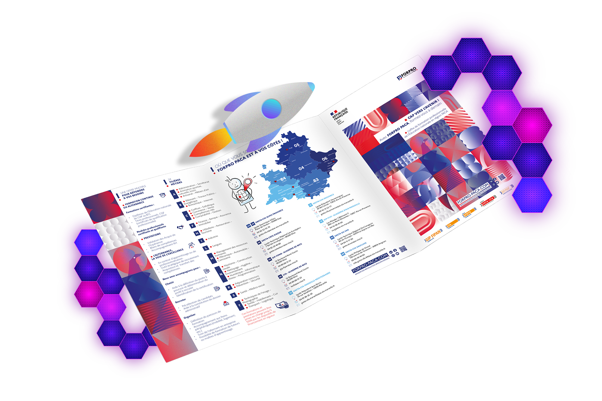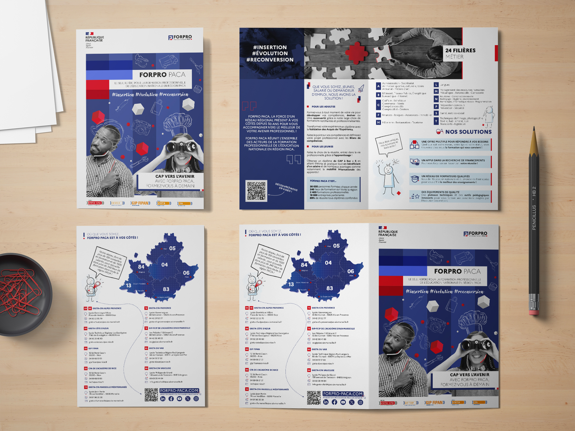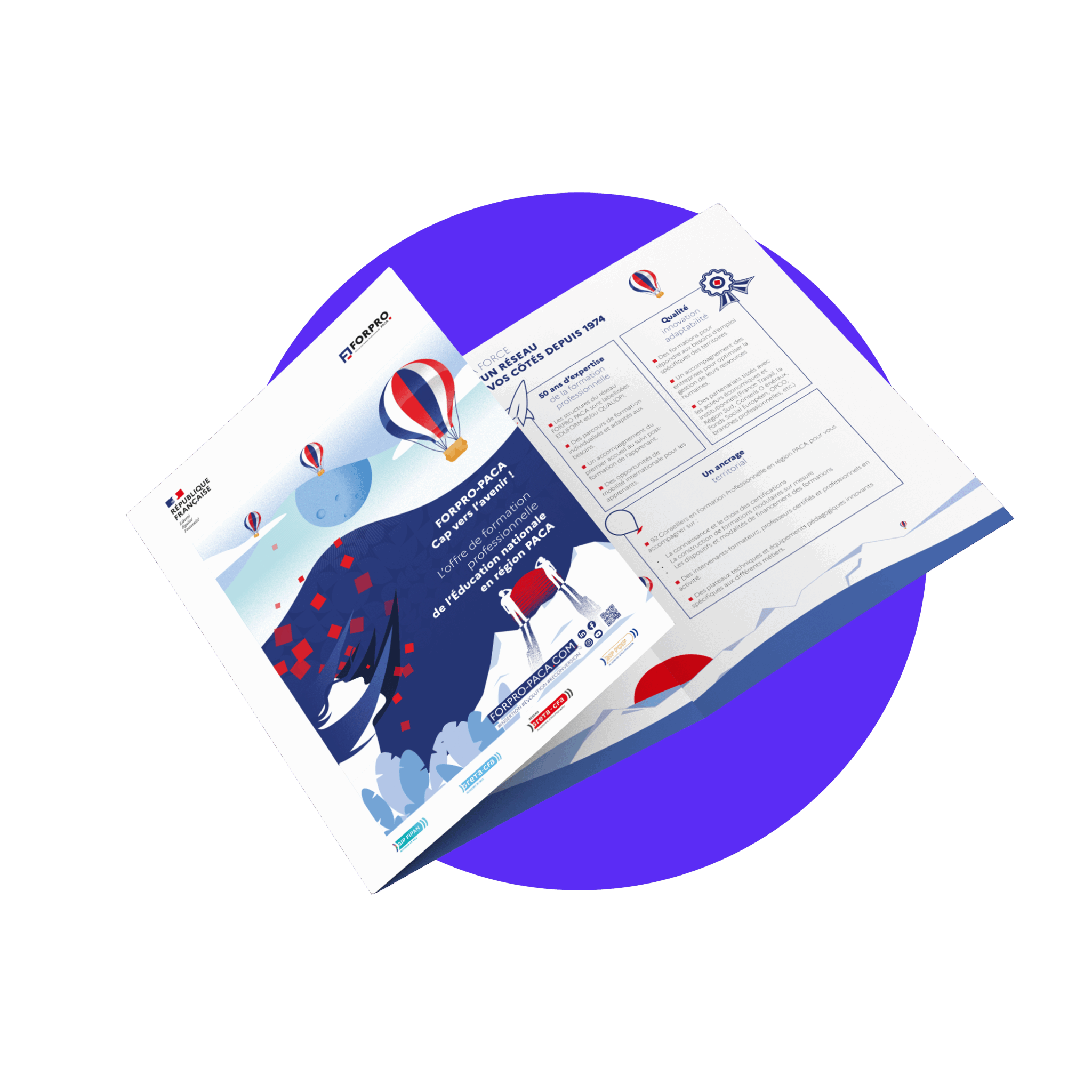 Création complète de l’identité visuelle du réseau FORPRO PACA, réunissant les acteurs de la formation professionnelle des académies de Nice et d’Aix-Marseille.