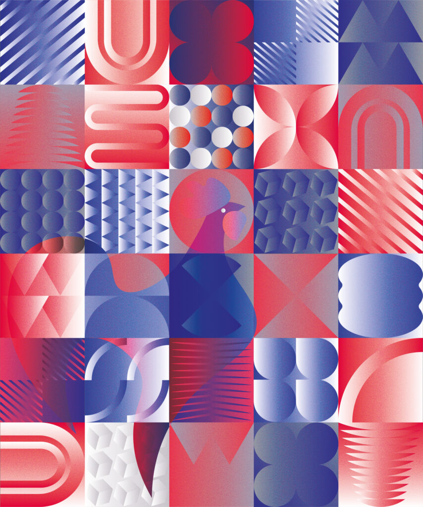 Un carré rouge utilisé comme signature graphique dans toute l’iconographie